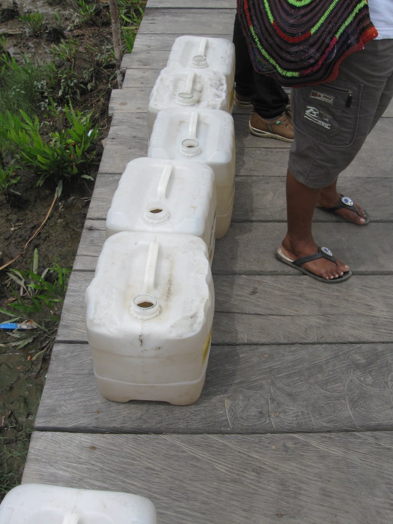 Village communities in Bintuni have little access to fresh water. Shallow wells only reach the layer of salty water. Rain water harvesting was widely practiced during the visit in 2011 and 2012.